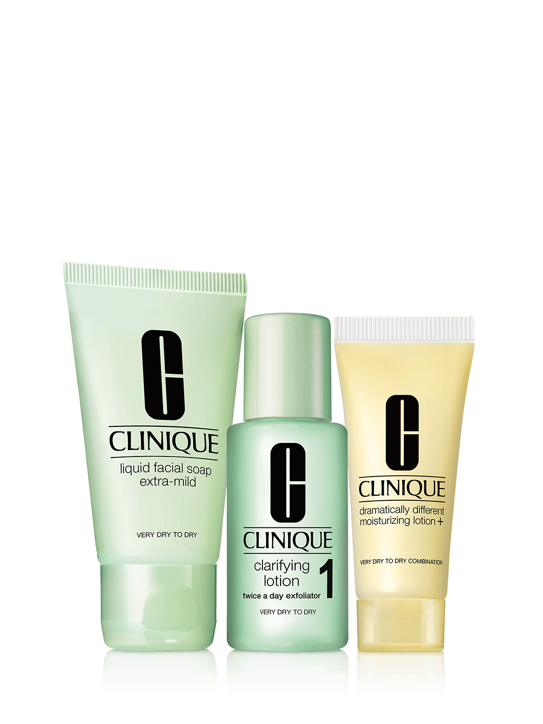 Il programma completo del sistema in 3 fasi.Con gli Intro Kit di Clinique, il Sistema in 3 Fasi è più semplice che mai. Solo 3 minuti, mattina e sera per vedere la tua pelle visibilmente più giovane e fresca. Il nostro Sistema sviluppato da Dermatologi e specifico per il tuo Tipo di Pelle. La confezione contiene:Liquid Facial Soap 50ml Clarifying Lotion 100ml Dramatically Different Moisturizing + 30mlLa Purezza è la Filosofia di Clinique. Senza parabeni. Senza ftalati. Senza profumo. Semplicemente una pelle felice.